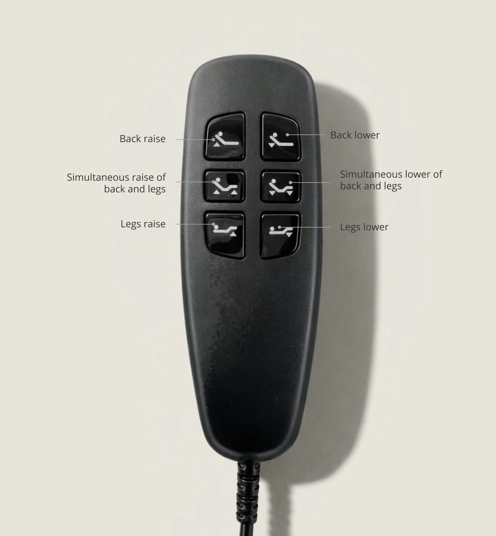Remote control with yarn for position management on the Forest bed base (with legs).