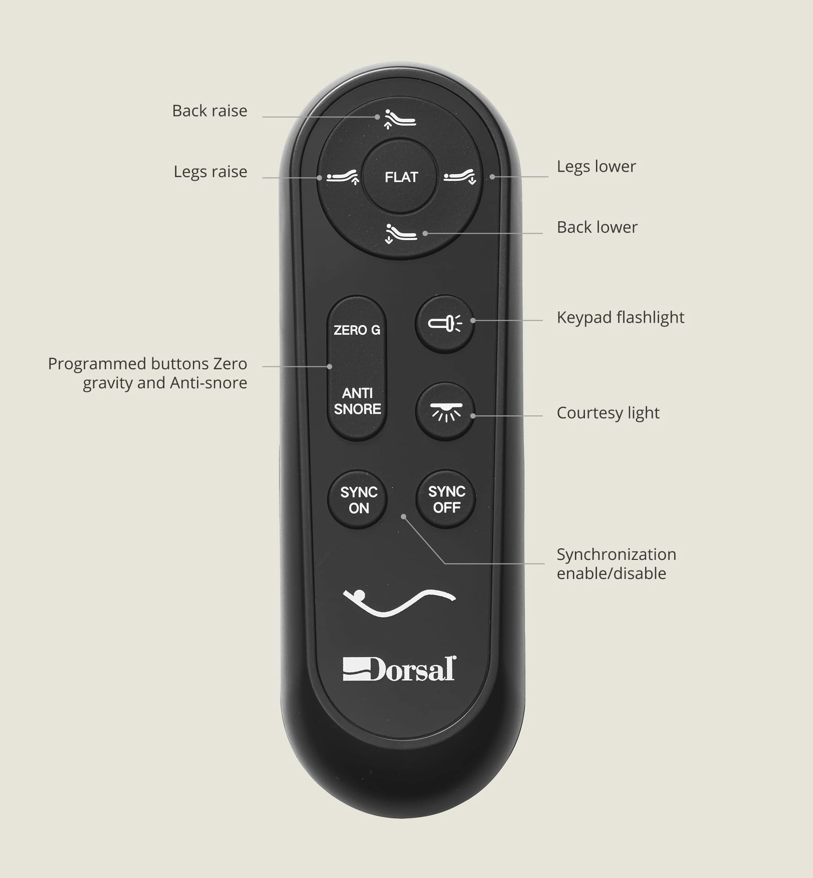 Wireless remote control for position management on Dorsal RA motorised slatted bases (with legs).